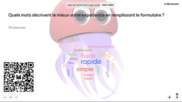 Pour remplir le formulaire via la Webapp, j’ai donné un QR code, et comme toujours, l’humour a fait son entrée. Entre les :
